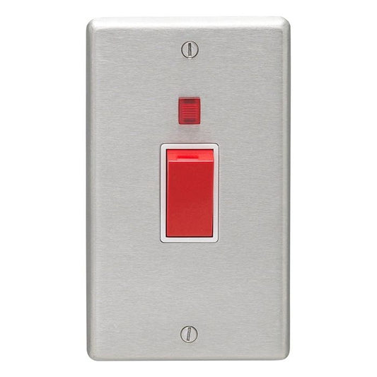 Concealed 3mm 45Amp Dp Cooker Switch With 13Amp Socket - Stainless Steel