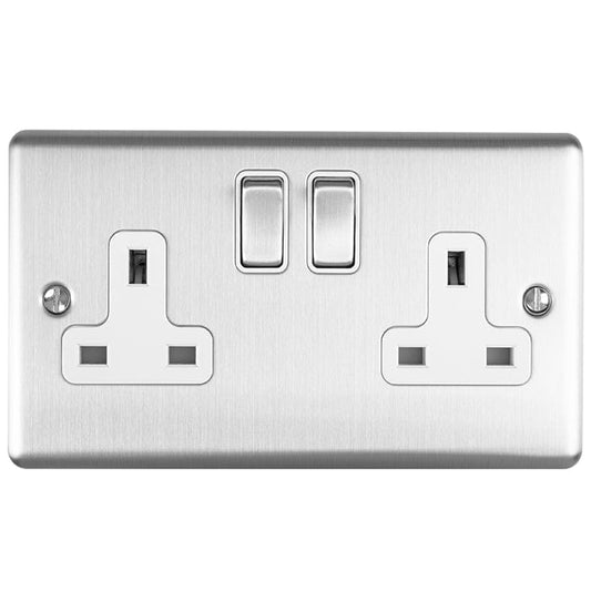 Enhance Decorative 2 Gang Socket - Satin Stainless