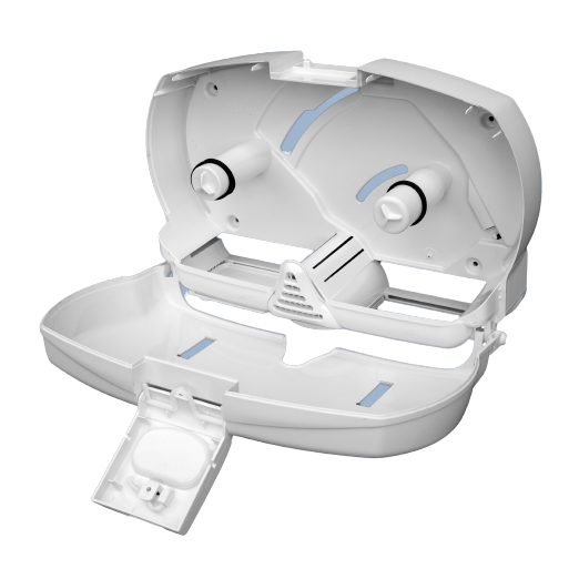 Quality,high-impactmaterial -Lockable -Capacity:2x250mrolls -Coresizediameter21/4” -Nowastesystem-onlyonerollaccessedatatime -Allrollsareusedcompletely-nowastedstubrolls,givingupto30%papersaving