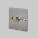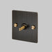 Product Description: Our range of 1G toggle switches are available in various finishes, including black, brass, steel, and smoked bronze. Each switch is made from solid metal and features a durable, UV stabilised, PU paint finish. They come with a choice of solid metal detail kits, including a toggle arm and coin screws, available in steel, brass, or black. The toggle arm can also be made from solid smoked bronze, steel, or brass and features our signature, diamond-cut, cross knurl pattern.